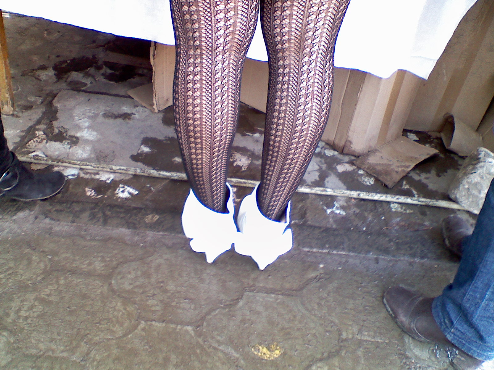Чрезвычайно редко видел теток у которых на ногах хорошо смотряться колготки сеточкой. И то о бычно это были короткие чулки, выше которых видна девичья ножжка. Короче колготки все портят нах. Да и качество фотки деиствительно подводит. На сапожках бантики - начерта? Большие слишком - где наити одежку чтобы к ним подходила, и смотрелась? Черт подери, мне нравяться темные полусапожки и не броские колготки. А то как напялят порои полупрозрачные белые, с красными самогами, аж тошнит. Вроде смотрищь - девченка классная, привллекательная - но белые колготы все портят. добавлено через 7 минут Фотка с юбкой - намного лучше, но тоже не то, выигрывает за счет задницы, очень красивая наверное задница и приятная. но колготы все портят, а сапогов вообще толком не видно, и бантиков. Я подумал - вообщето бантики могут быть очень даже ничего. Но без колготов.