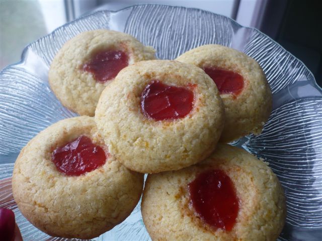 Печенья Цитрусовые 175 г сл. масла, комнатной температуры 2/3 ст. сахара тёртая цедра 1 апельсина и 1 лимона 2 желтка 1 3/4 ст. муки 1 ч.л. разрыхлителя щепотка соли джем или курд для начинки Застелить противень пергаментом. Взбить масло с сахаром в пышную массу. Добавить цедру, желтки и муку (с разрыхлителем и солью). Всё хорошо смешать. Сформировать из теста шарики, диаметром 3 см. Выложить на противень, и сделать в них углубления (я использовала круглый кончик ручки от деревянной ложки). Поместить противень в холодильник на 20-30 мин. Разогреть духовку до 160С. Заполнить печенье начинкой и выпекать 20-30 мин или пока не начнут слегка румяниться. Охладить и подавать.