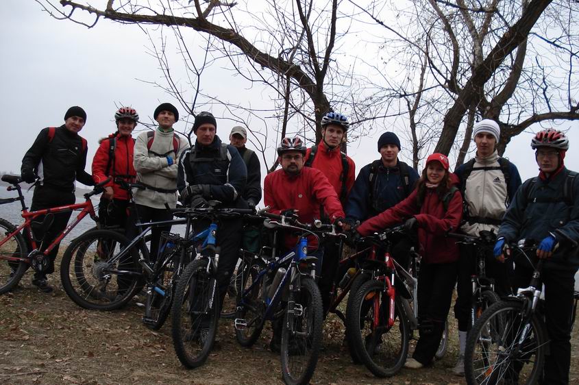 Бывают дни, когда забываешь обо всем и погружаешься в текущий момент. А потом, если закрыть глаза, перед мысленным взором снова и снова встает одна и та же картинка. Так, раньше после разведения костра на даче до конца дня перед глазами плясало пламя. А после дня, посвященного сбору грибов – хвоя и лаковый масленок. А сейчас я закрываю глаза и непроизвольно возникает фигура в шлеме, стоящая за рулем велосипеда. 11 единомышленников (9 мальчиков и 2 девочки), 13 часов на свежем воздухе и 7 часов в движении – не каждый так проводит выходной день. А нам повезло! На 8-часовой паром собралось 8 человек. Понятно было, что нас будет немало, а потому мое предложение о кораблике (холодно на пароме в ноябре!) отклонили и выбор был сделан в пользу парома. Погрузились, утеплились дополнительными свитерами и шапками. А зачинщик PSV, как оказалось, приедет на кораблике! На той стороне встретились с ним и отправились в путь. Был предложен вариант с бродом, но мы с Катей категорически отказались. Поутру было прохладно, ноги у меня замерзли еще на пароме и мысль о речной воде вызывала только дрожь. Но в течение дня стало ясно, что с погодой нам повезло. Ветер был несущественный, тепло, дождя не было, грунт везде сухой – как по заказу! Свежекупленные горнолыжные перчатки скоро сменила на более тонкие. Чаще было жарко, чем холодно. Скоро возникли и обещанные грунты. На асфальте мы действительно оказывались редко и ненадолго. Ехалось по сухому грунту замечательно! По размокшему, да при встречном ветре тяжко это, сразу на асфальт хочется. А нас не покидало ощущение, что практически постоянно нас подгонял попутный ветер. У меня возникло удивительное чувство уверенности и безопасности. То ли в сравнении с крупными дорогами, по которым часто ездили в последнее время, где твои маневры ограничены неровной обочиной с одной стороны и несущимся транспортом с другой, а под колесами того и гляди возникают неровности, которые не знаешь, как и объехать безопасно. То ли вспомнились первые поездки в прошлом году, когда об опасности я еще не задумывалась. То ли просто был очень хороший грунт, от которого не ждешь подвоха. А как приятны горки, на которых не надо переключаться, достаточно заранее подразогнаться и по инерции ты уже на вершине, без особых усилий! А узкий туннель между стенами камыша! Через некоторое время поступили вести, что еще два человека жаждут к нам присоединиться через 20 минут. Мы ждали их на том месте, где в октябре отдыхал Велопоезд из 16 человек. Быстренько развели костер, подкрепились. 20 минут давно истекли. Терпение иссякло, и мы стали собираться, чтобы поймать подкрепление уже на дороге. Ведь была заявлена серьезная цель, а любоваться поймой лучше все же засветло. А тут и «опоздуны» подъехали. Вперед! В соответствии с заявленной категорией покатушки - «разведывательная», неоднократно мы упирались в тупик или понимали, что избранная дорога ведет в противоположную сторону от требуемой. Изредка въезажали в песчаные участки, где некоторой части участников приходилось спешиваться. Обогнали мужика, бегущего трусцой на пару с собакой, уверенно признав в нем аборигена. Но когда немного заплутали в очередной раз, встретив его снова, выяснили, что мы одной крови – не местной. Как водится в большой группе с разными возможностями участников, останавливались мы часто, жда