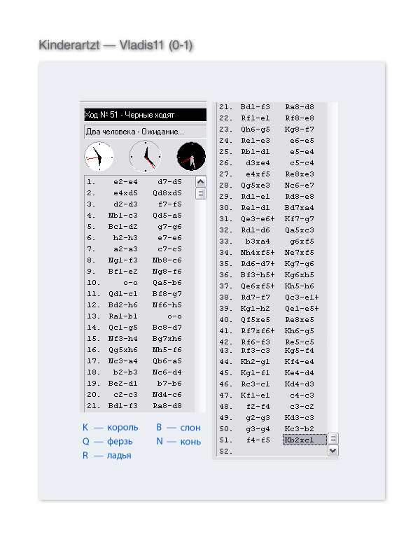Шахматы. Kinderartzt vs Vladis11. 0:2