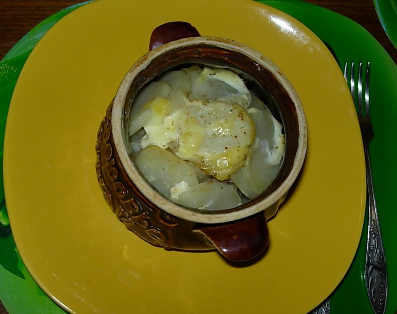 Вобщем тут написанный рецепт с курицей и рисом -решила испобовать со свининой. На дно горшочка - промытый рис, затем свинина мелко порезанная посоленая поперченая залитая майонезом и оставленная на 5 минут, затем лук кольцами тонюсенько порезанный. Залила - сметана+сливки+майонез. И посыпала сыром. Закрыла крышечкой. Хорошо разогрела духовку (обыкновеная), на среднем огне, через 10 минут убавила огонь - и так томилось 45 минут...вкуснотень не передаваемая...