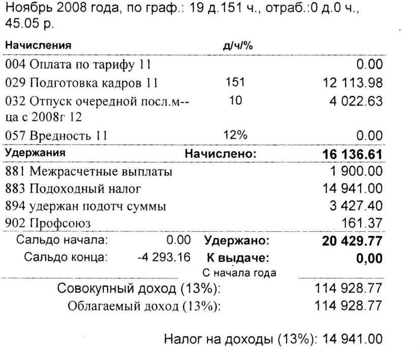 В ноябрьском квитке о заработной плате увидел что с меня удержали деньги в счет погашения подоходного налога и получать мне нечего!