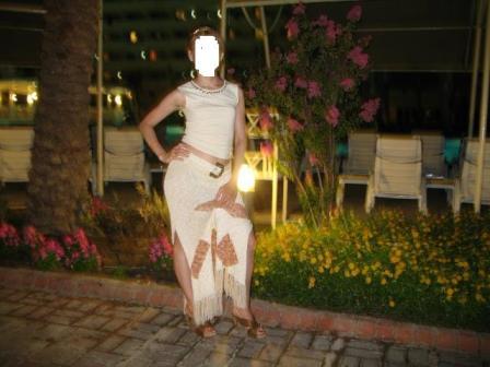 Тизифона, у меня вещи в хорошем состоянии, но все это достаточно старенькое - ведь вы новенькое постите. Это все интересные узоры, я на них в жизни не решусь, это такое внимание нужно и время, у меня его урывками... Вот кофтенка на всех курортах со мной отъездила - это льняная беленая нитка, тот самый способ вязки - 4 петли лицевых, потом 4 вытянутые петли. В ней в дичайшую жару удобно и не жарко. А юбку все женщины всегда так рассматривают))) Особенно те, кто и сам хорошо вяжет - тоже одеты в вещи ручной вязки. И к тому же я люблю простые в крое вещи, мои такие, незамысловатые. Для меня считать петли в образце, подгонять рукав к пройме - титанические труды. Я лучше по пройме наберу петель и провяжу к запястью))).