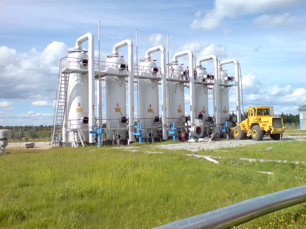 Это то, что показывают новостные каналы в ситуации с газовым конфликтом. Вспомогательное оборудование компрессорных станций: пылеуловители, фильтр-сепараторы, емкости, газосепаратары, адсорберы, АВО газа. Т.е. то оборудование, которое подготавливает газ для газоперекачивающего агрегата.