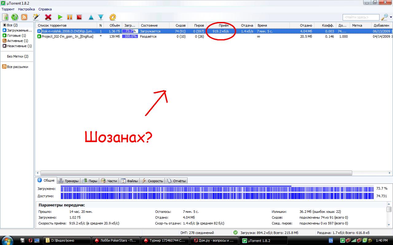 ну в списке пиров смотрите кто то с волгограда вам отдает на такой скорости высокой.. через ретрекер.