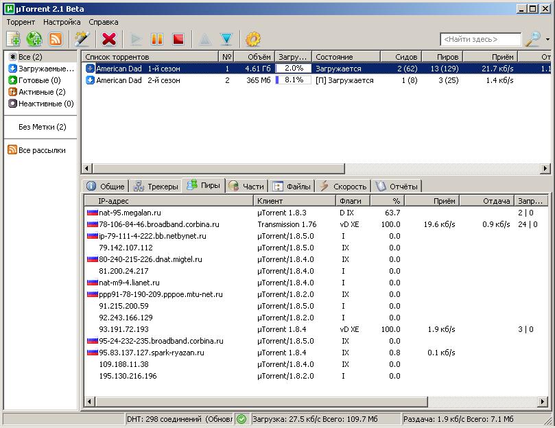 с торрентами я уже устал возиться... у меня качает нормально,но отдача-практически исчезла. то же самое,или пиры не погут приконнектиться,или приконнектятся,и тянут байтами.за пару недель перепробовал кучу версий начиная с 1.8.2(которой до этого пользовался где то полгода,и все было нормально и до последних беток,то работает,то не работает.от провайдера видимо никакого ответа не будет...