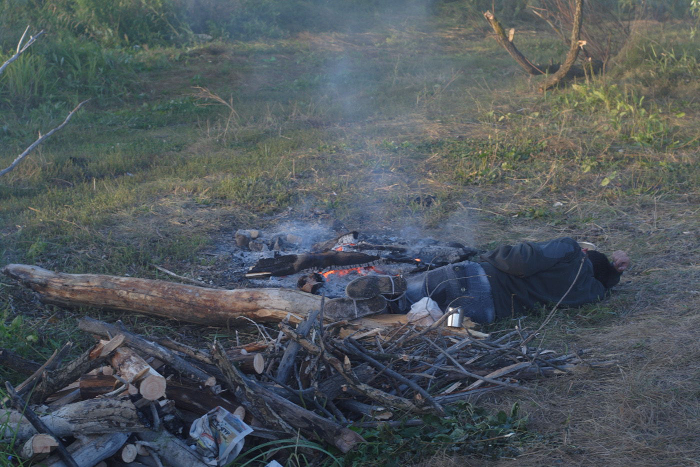 Как уже сказал Сергдж, дело было 31 августа. Что может быть лучше, чем развалиться после сытного ужина у костра с великолепной компанией на природе. Но я чувствовал небольшой дискомфорт от того что мы, как мне казалось, уж очень близко находимся к жилью аборигенов. По натуре я мизантроп, а тут еще такое соседство… В районе девяти часов вечера, мимо лагеря прошла толпа подростков пуберантного периода, как выяснилось позже, с целью отметить окончание лета. Увидев нас, они почему-то притихли, что мне особенно и не понравилось. Они расположились на пикник в 100-150 метрах от нас, мы были отгорожены от них деревьями и каким-то бруствером. Пошумев до полуночи, ребята удалились, дав нам возможность насладиться шелестом волн и дуновениям легко ветерка…Олег, как говорится, лег-умер, Romashka расположившись в полутораметрах между мной и Олегом , тоже сладко засопел. Сергдж, облюбовав место чуть поодаль, взял несколько красивых ракурсов своим «аццким телескопом» и зарылся в спальник. Велотанк спал под кроной диких яблок, аки молодой овн. Я долго ворочался, то прятал топорик под рюкзак, то снова кладя его рядом и когда я стал погружаться в сон, раздался нечеловеческий вопль!!!! :o Мгновение и… я был в положении сидя, в руках – топор. Олег уже стоял на ногах с пилой наизготовку :boxer: , Сергдж высунул голову из спальника … Romahska сидел и тихо бормотал: парни тихо, тихо все номано, все номано… Что ему тогда приснилось мы так и не узнали, встревоженные, мы опять улеглись и лишь Велотанк безмятежно спал, не озабоченный ничем, ему снилась его мечта, предмет всех его вожделений - карбоновая рама…