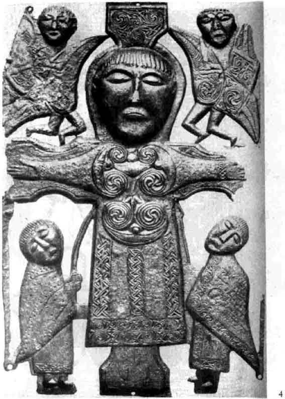 Да, и на царских деньгах. Я потихоньку книжку его целиком читаю, на сотовом Для буддизма это, наверное, нехарактерно, поскольку там нет представлений о противопоставлении добра и зла. Встретил занятную работу Багдасарова про свастику, обстоятельную: http://bagdasarovr.narod.ru/swastika.htm#buddizm Оттуда фантастическая картинка ирландского распятия, во вложении. Подпись к ней: средневековое ирландское распятие. Спиралевидные свастики обозначают энергии, циркулирующие в теле Богочеловека. Дублин, Национальный музей Здесь свастики в обе стороны. Описывать свастиками или иными графическими способами ход энергии в теле человека - это характерный прием из буддизма Ваджраяны Что-то я пока не слышал, чтобы христиане визуализировали ход течения энергии в теле, так и поверю в контакт Христа с буддийскими учениями во время путешествия в Индию )