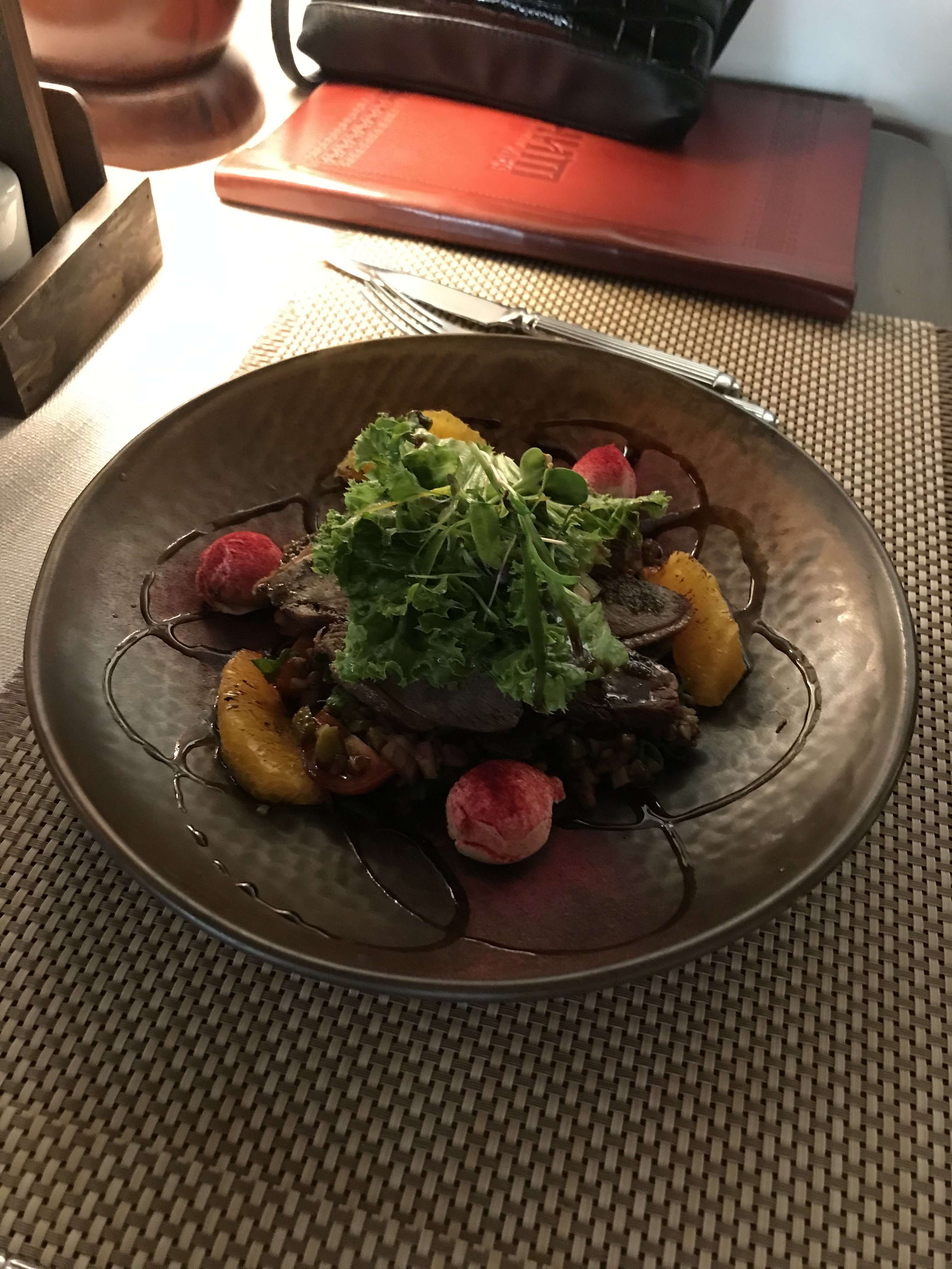 Вчера посетили Шинок. Из того что брали в основном салат с лисичками, печенью, два с уткой, вкусно. Детям фри, сырные палочки. На и холодные закуски. Друзья советовали мне там рульку, но мне и салата тёплого хватило. Им бы ещё детский уголок))