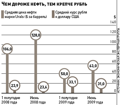 Не угадал, + 9 копеек... Не надо ставить зависимость рубль/доллар к цене на нефть, это было бы слишком просто... и когда-нибудь кончится. Тем более, что сам доллар по отношению к евро, например, зависит от цены на нефть. Потому как внутренние цены в России от мировых цен на нефть не зависят.... (дальше уже несколько раз писал, надоело)
