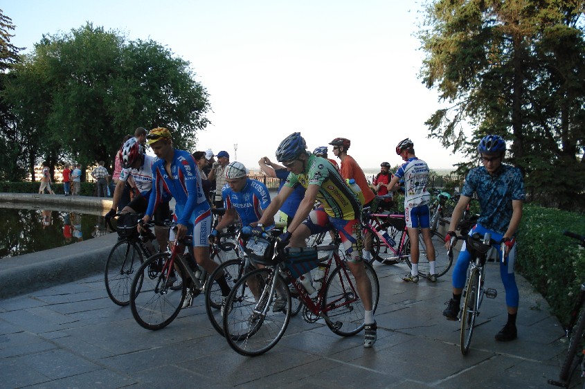 Встретились у вышеозначенной скульптуры. Проводили марафонцев в дальний путь. Символом серьезности четырехсотки перед предыдущими марафонами стали велоштаны с памперсами, почти у всех Мягко сидючи, наслаждаясь весьма летной погодой, народ укатил довольный