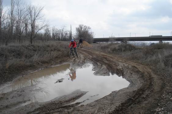 Ближе к концу я начала радоваться, что на этот раз мы не угваздаемся в грязи. И тут дорога превратилась в полное ж… Я быстренько намотала на слой грязи слой травы, и вел начал периодически застревать. rootproc с asvel`ом ухитрились избежать моей участи. В определенный момент колеса моего вела оказались залеплены, что называется, по самые гланды, у них же были слегка запачканные покрышки. Со временем, правда, картина несколько уравнялась.