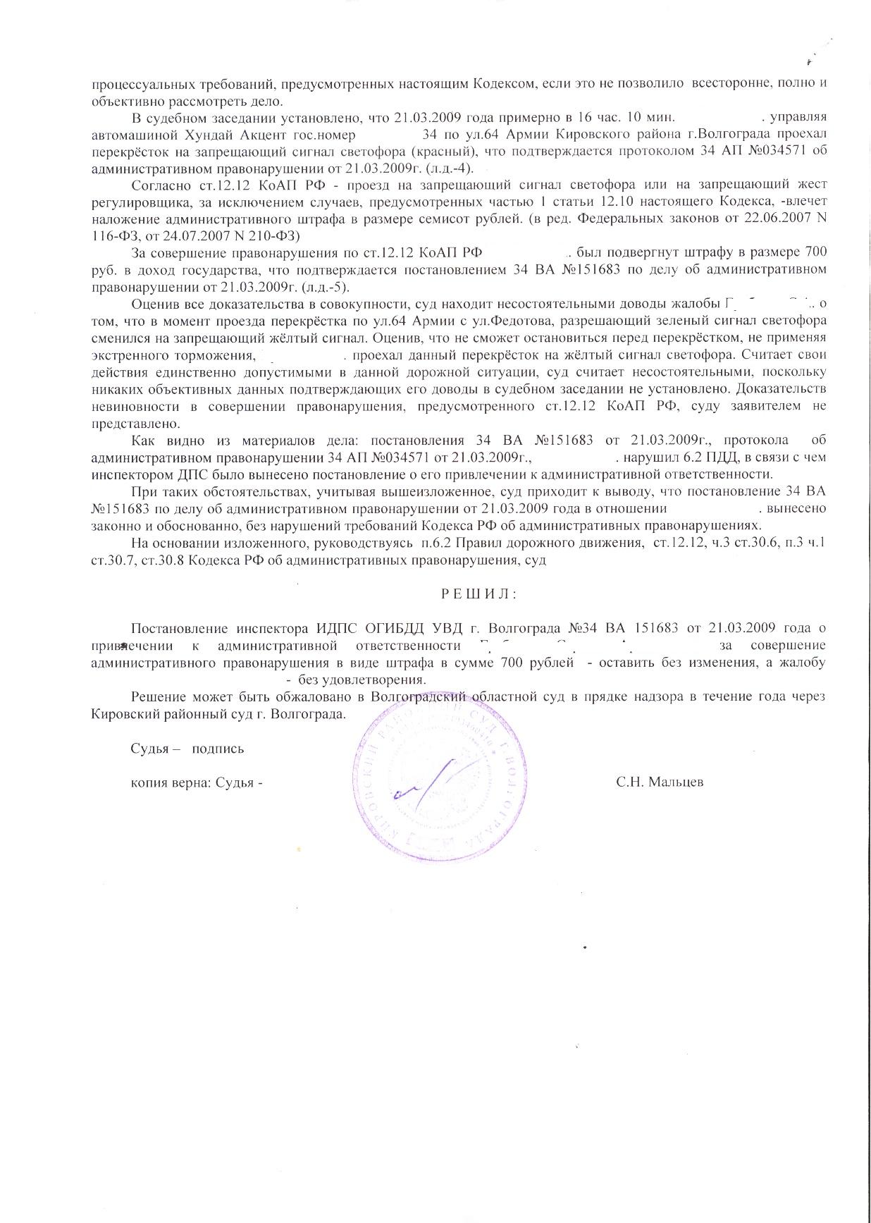 я пришел, записали мои паспортные данные, предложили высказаться, я всё как в жалобе написано и сказал (проехал на желтый, ни чего не нарушал, аварийной стиуации не создал, свидетеля не записали, прав мне моих не объяснили), мне сказали подождать пока судья "вынесет решение"... Жду... 15 минут "походите на оглашение", судья:"суд такой то такой то по жалобе такого то по делу такому то вынес решение выплать штраф в размере 700р, решение в письменной форме будет во втроник, решение можнообжаловать в 10дневный срок". Замечу, что со стороны гайев ни кого не было. Ни причины в связи с чем вынесено такое решение ни каких иных пояснений не было.