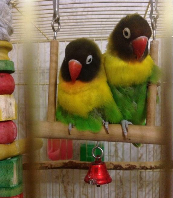 на время ремонта детской перенесли клетку с неразлучниками в зал - у Банта релакс, глаз не отвести)