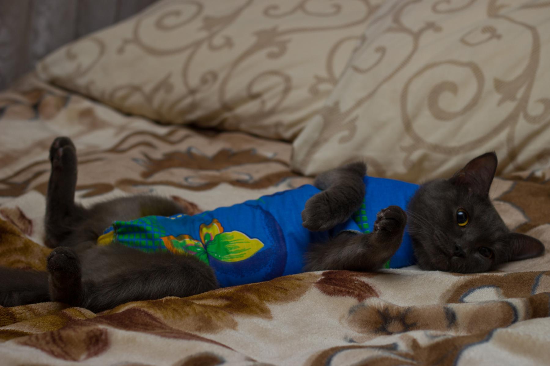 Стерилизовали сегодня. Кошко обижена на весь мир.