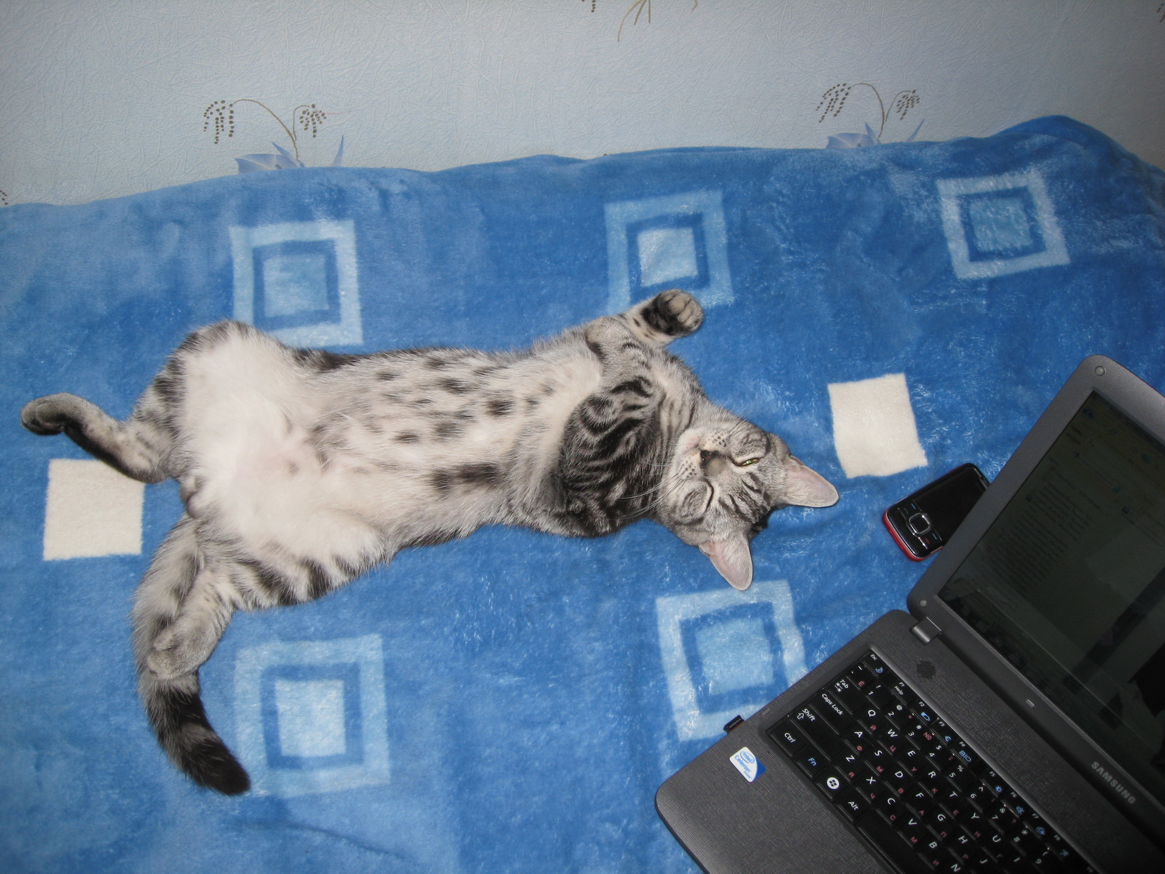 а вот фото снятое на моб.телефон-мальчик (ему месяцев пять было) лёг в аквариум.. там живёт черепашка.. очень он на ней удобно спал..дело было ещё дома у старой заводчицы, черепашку потом пришлось накрыть так как этот "товарисч" тудв нырял постоянно..:spider: