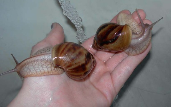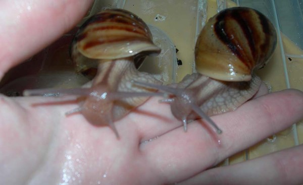 завтра нафоткаю их в масштабе, а то это доча с мобилки фоткала. они прикольные! особенно когда их на руку берёшь и под струйку воды... они на дыбы становятся и рогами шевелят. а ещё доча на них дует - и они как будто целоваться тянутся - смешно:d