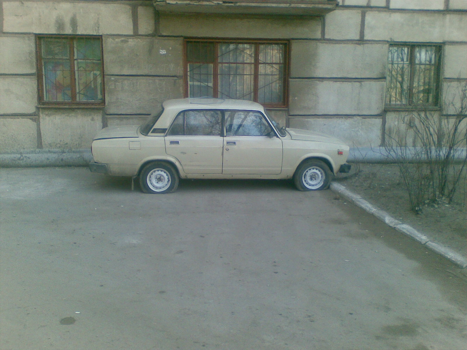 Да нет, машина появилась в субботу, а в воскресенье уже не смогла уехать восвояси. Кстати не удивлюсь если она приехала к жителям окон под которыми стоит, но соседи люди "добрые". Блин стоит никому не мешает, проезд не загораживает, только вид из окна .