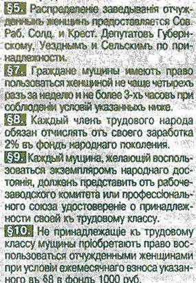 Даааа.... Ох как я не завидую тем кто жил в те времена! Хотя, я думаю никто по этим законам не жил. Одно слово - ЭТО КОШМАР, был бы для меня! Такое очучение, что это все составлял импотент.