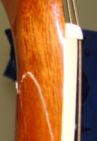 Клей эпоксидкой, зажимай струбциной через мягкую прокладку. Будет ОК И не натягивай так сильно струны добавлено через 2 минуты А вобще-то похоже на брак. Может попробовать вернуть?