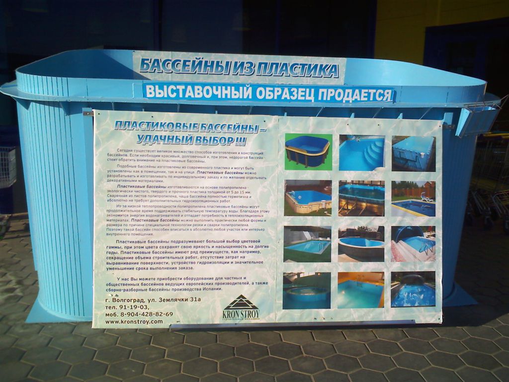 Фирма что пласиковыми бассейнам занимается на пересечении Жукова и трамвая, недалеко от 2-продольной. Если едешь по Жукова в центр, то видно по правой стороне вывеска и сами бассейны на попа поставленные из-за забора. Насчет водобработки -- не надо недооценивать. Особенно открытый бассейн. Это сложный процесс и дорогой. добавлено через 25 секунд По дешевому -- каркасный или надувной бассейн. Покубастился и свернул