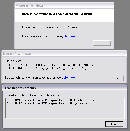 WinXP. Система восстановлена после серьёзной ошибки. BSOD Bad_pool_caller после перезагрузки - системное сообщение см. скрин какой диагноз поставят спецы?