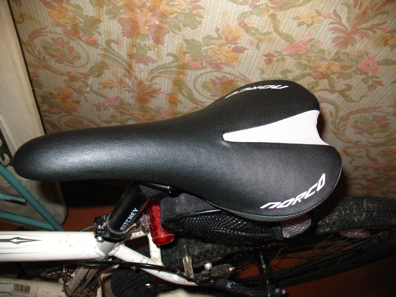 Педали Shimano SM-PD22/PD-M505 (Не знаю, какая из двух маркировок нужнее, списал всё.). Прошли 3-4 ного-часа. 500 рублей. Сиденье Norco, штатное, не знаю как ещё охарактеризовать. 400 руб. Пробег - 10-12 попо-часов.