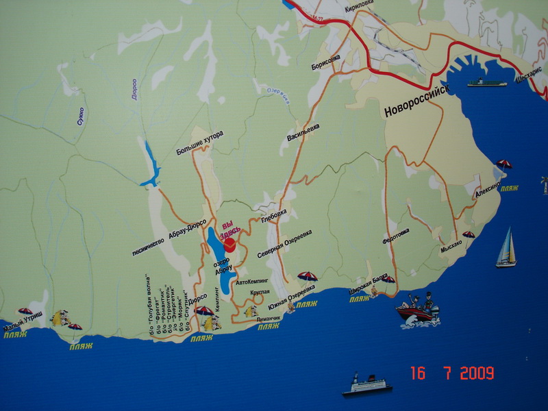 На днях вернулись с Черного, были в Абрау-Дюрсо (а точнее в х.Дюрсо на 4 км дальше) вода кристально чистая. Т.к. были на а\м, то проехались дальше по горам, по бездорожью. Дальше по побережью очень много кемпингов, но все не бесплатно. Стоимоть пребывания там 200 р. за а\м и 150 р. за палатку. Итого 350 р. в сутки! А подругому выхода к морю не найти. Очень понравилось место в 13 км. от х.Дюрсо (практически не доезжая Анапы по побережюь около 18 км) туда въезд на машине стоит 100 р. в сутки (чек обязательно сохраняйте!), а за палатку не платишь. Рядом родник с пресной водой. Вода в море кристально чистая, народу не много. Если б знала как то могла бы показать фотки.