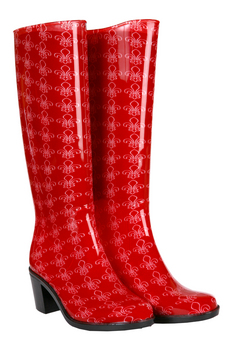 Мне недавно купили на дачу калоши с какими-то там розовыми цветами. А в Ашане рассматривала сапоги резиновые на каблуках и с молнией