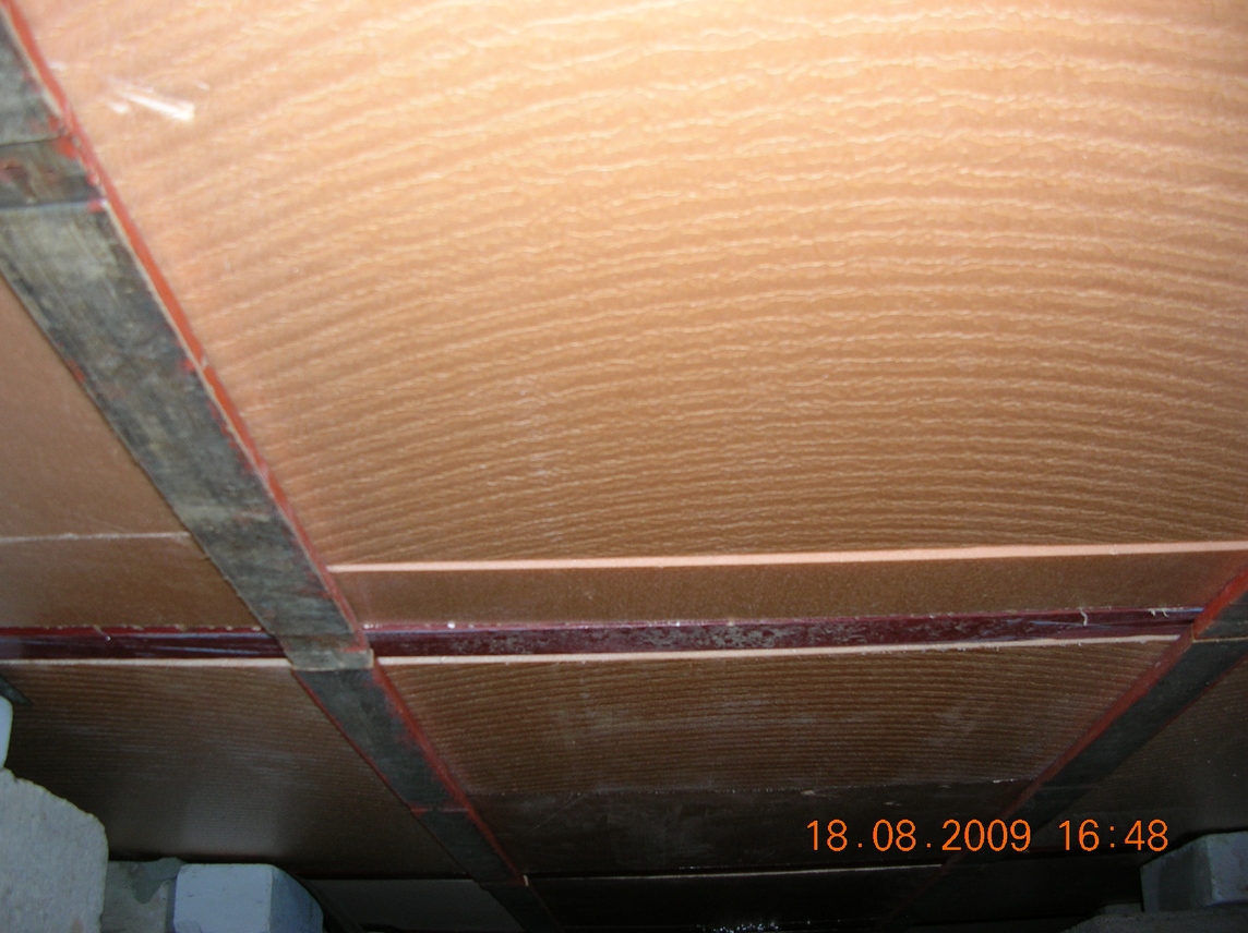 вот, как и обещал, фотки. там,примерно всё ясно, вид снизу. розовое это пенополиуретан, пропенены швы сверху, для герметичности. поверх настелена Урса.