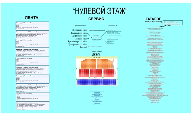 структура Вот что получилось при экспорте из корела в веб... нажеюсь, что в целом понятно, хотя и не видно многое. красным текстом - то, что является ссылкой на СТРАНИЧКУ (типичную, информационную), коричневым сцветом - то, что является ссылкой на ЛЕНТУ. На ленте летописью (постами) вся афиша, как она появляется и обновляется в городе, рядом - списки организаторов-распространителей билетов-районов, на нулевом ээтаже еще все схемы залов с местами и каталог юрлиц с выпадающими менюшками творческих единиц второй этаж - привычные разделы. Государственное - списком из ссылок на страницы, коммеречкое - постами внизу. Второй этаж - разные выборки.