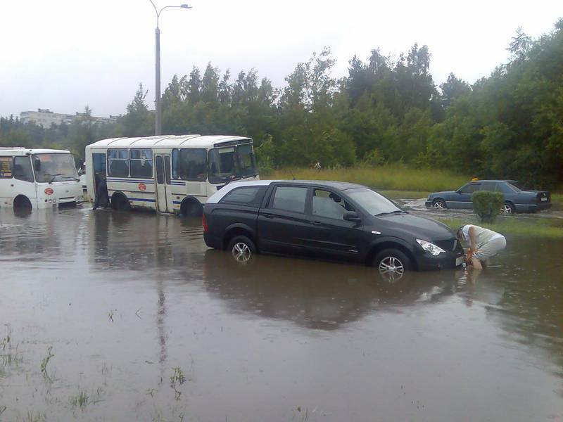 korya, думаю, Вас бы впечатлил только вселенский потоп, а все остальное так, обыденность. только вот машины у всех ну никак не ноевы ковчеги. а вот когда при таком, с ваших слов, банальном событии, которое как будто бы каждый день у нас в городе происходит, вода в салон заливается, становится не так смешно, как Вам тут.