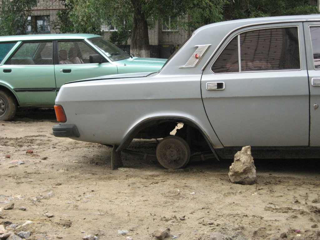 После вот такого случая (в жизни не мог представить такого), см фото. Задумался я о приобретении секреток, но не тех которые продаются на каждом углу и теж самые 3.14деRсы тож могут приобрести, а именно штучного изготовления со своим ключом. И по этому хочу узнать телефончик или куда можно подъехать, чтоб обсудить чертежик. Резина хоть и далеко и не "бричстоун", даж с пометкой Made in USSR, Export. Такую резину фыг где найдешь, всмысле пару, сняли оба, так же сняли колпаки и гайки тож забрали. Резина хоть и старенькая была, но по грази лазила похлеще любой снежинки. P.S.: Сигналки нет, ибо кому нужно и она не помешает, а лишний раз травмировать соседей не очень охото и стоит она дороже машины. Умники на тему стоянок и гаражей просьба проходить мимо, я здесь задаю вопрос не на тему куда ставить машину и в ваших советах не нуждаюсь, так что не чего флудить!