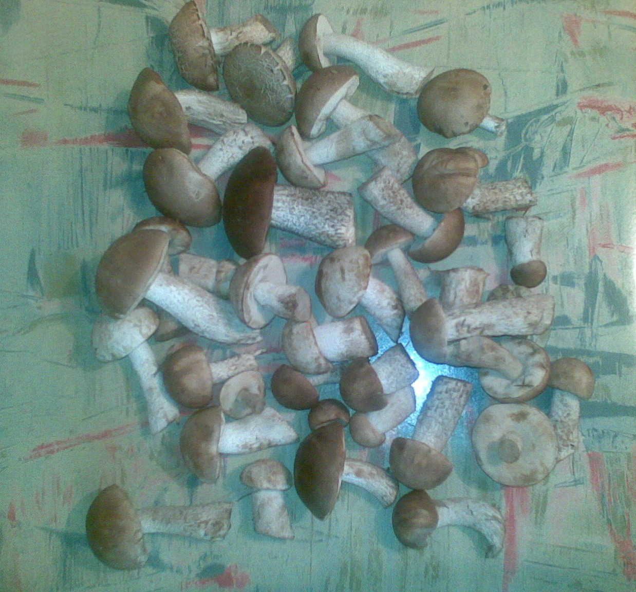 Сегодня дернул на полянку подосиновиков, лесники перекопали проезды в лес, поэтому пришлось стравливаться и идти по песку, но Рафаил с отключенной электроникой с горем пополам доковылял. Новых подосиновиков почти нет еле собрали, что смогли. Было очень много дорожек свинух (кажется? сфотан перевернутым), но мы не брали
