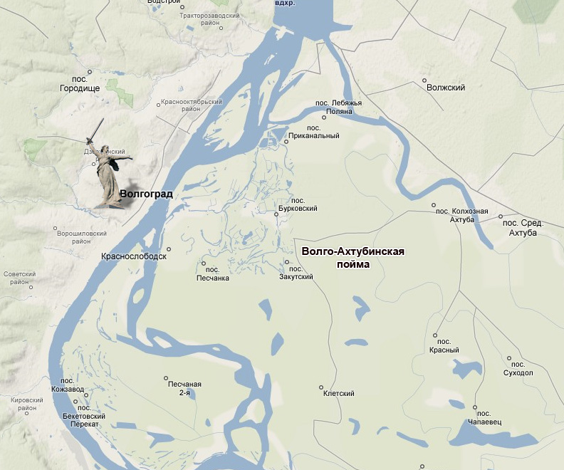 Волго-Ахтубинская пойма расположена в бассейне реки Волги. Основная ее часть находится на территории Астраханской области. Это удивительный мир тысячи рек, речек, островов и озёр. Именно здесь сохранились нетронутые человеческой деятельностью ландшафты. Пойма экологически чище, чем дельта, из-за отсутствия на ее территории промышленных предприятий. Волго-Ахтубинская пойма начинается за плотиной Волжской гидроэлектростанции. Это природное образование между основным руслом Волги и параллельным Волге рукавом Ахтубой, простирающееся на 450 км от Волгограда до Астрахани. Пойма справедливо считается одним из крупнейших мировых оазисов, ее площадь – 7,56 тыс. кв. км.