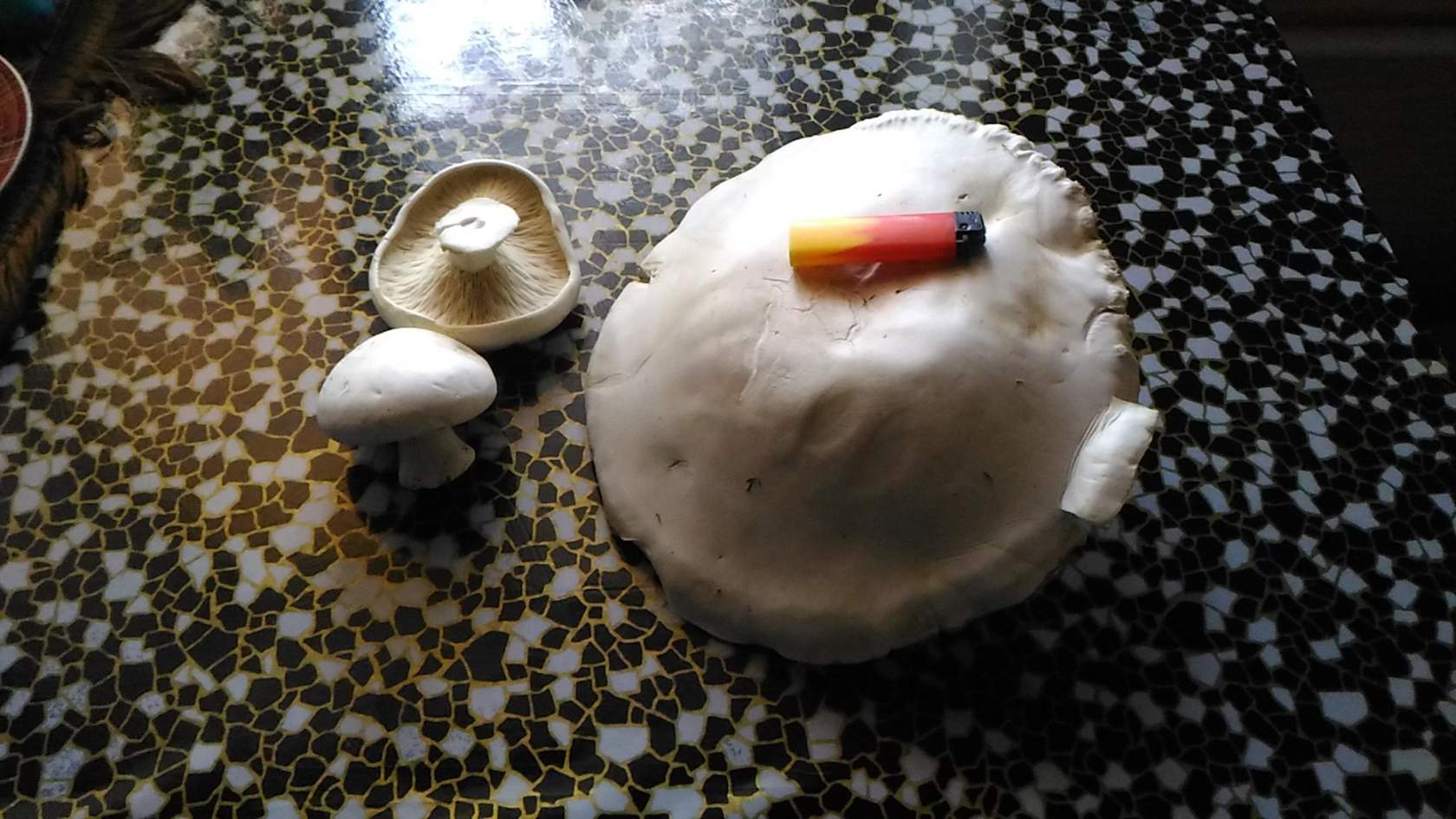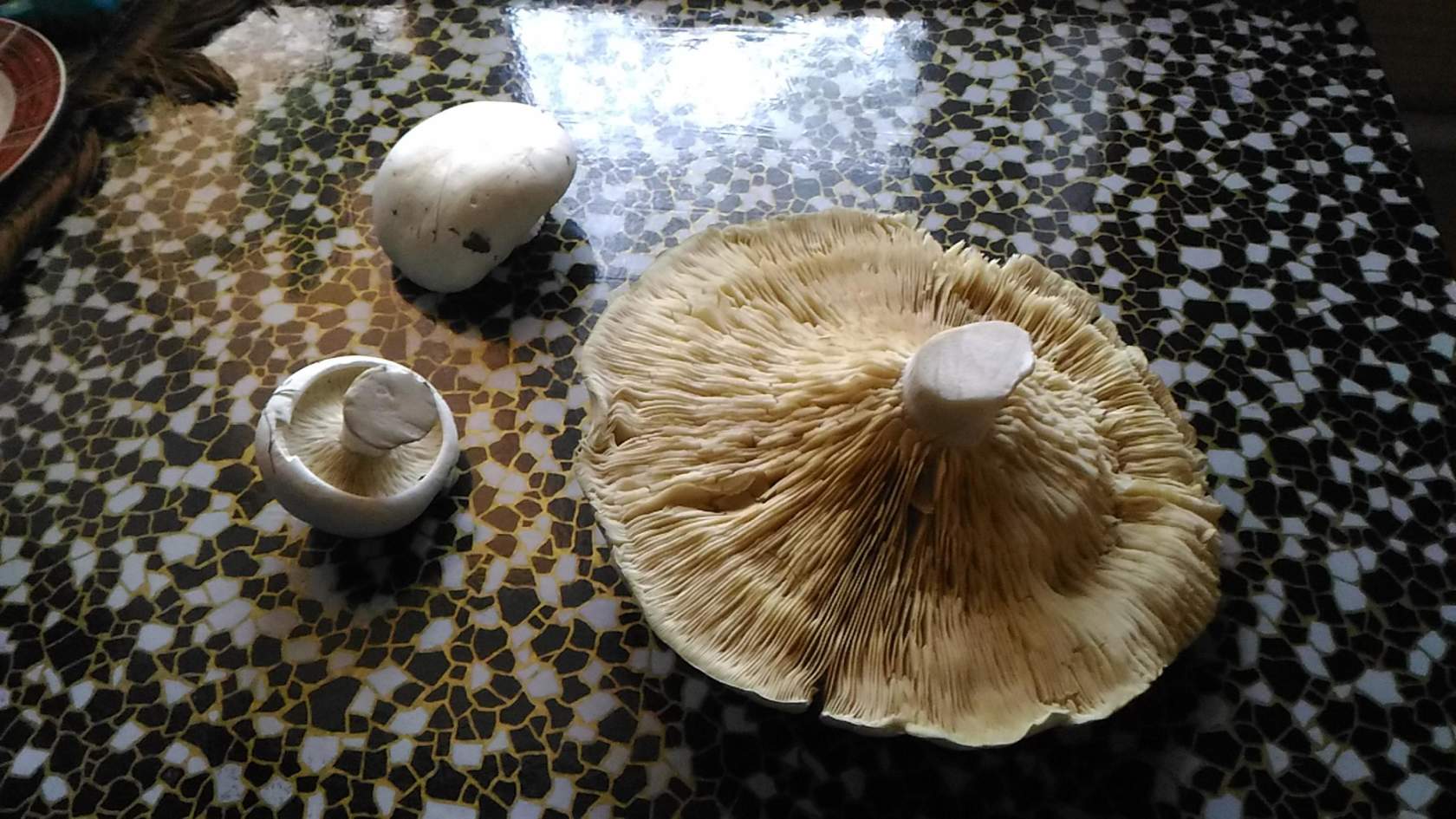 прости, комрад, я не специально. я виноват. те, что белого цвета - шампиньоны. те, что желтые - польские грибы, так называемые. но, как на самом деле они называются - ХЗ. в энциклопедиях польские - другие. скорее всего какая то разновидность белого гриба. грибы - куплены у бабушки.