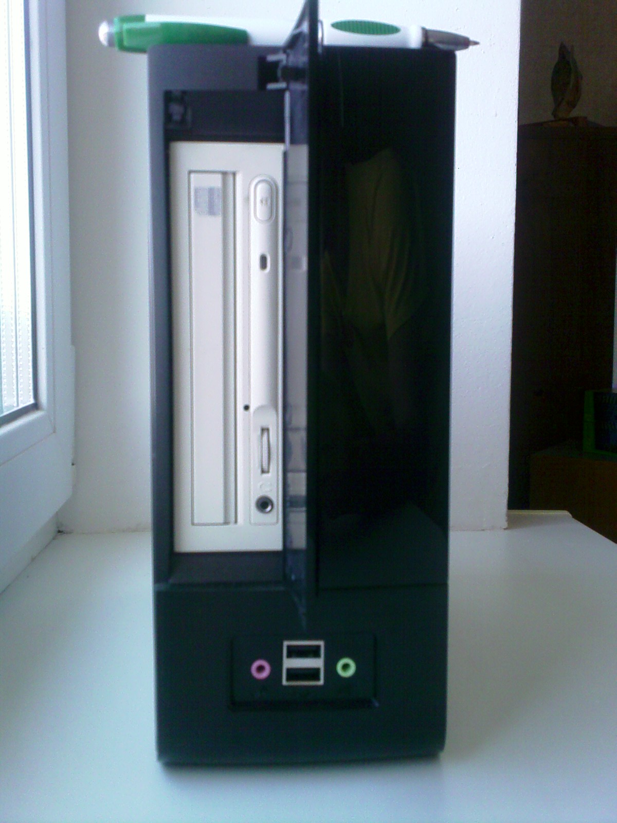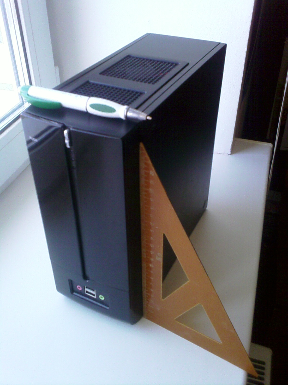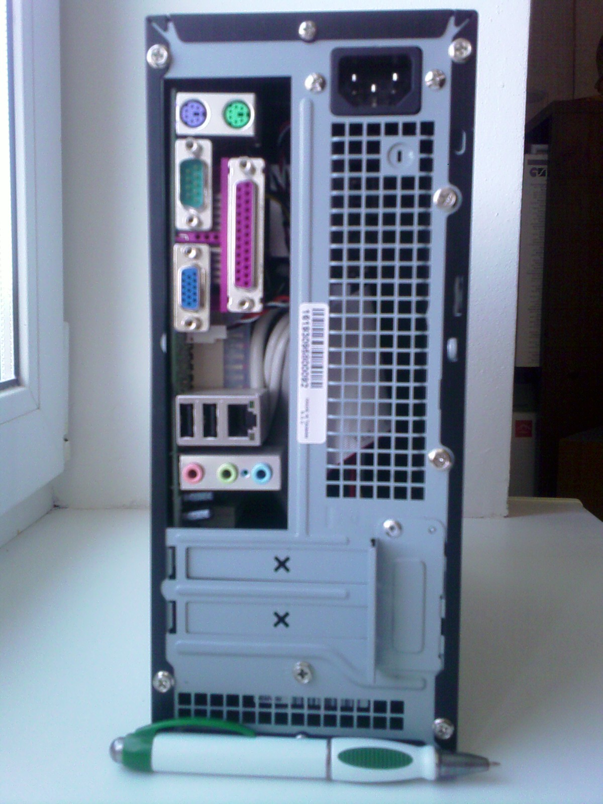 Габариты: 264*112*230mm Содержание: 1. Корпус: In Win BM639 120w Black Mini-ITX (Новый на гарантии) 2. Материнская плата: INTEL D201GLY (Новая, но без гарантии. Куплена год назад, ждала корпус). 3. Процессор интегрирован Celeron 1.33 ГГц. 4. Память DDR-2 1ГБт (Стандартный модуль) 5. HDD: 80Гбт IDE (3.5") 6. Клавиатуру, мышку и сидюк не отдам. 7. Сзади корпуса нет заглушки материнской платы. 8. Возможна загрузка с USB, по сети, ну и все стандартные варианты. Хочу 4000 руб, торг...