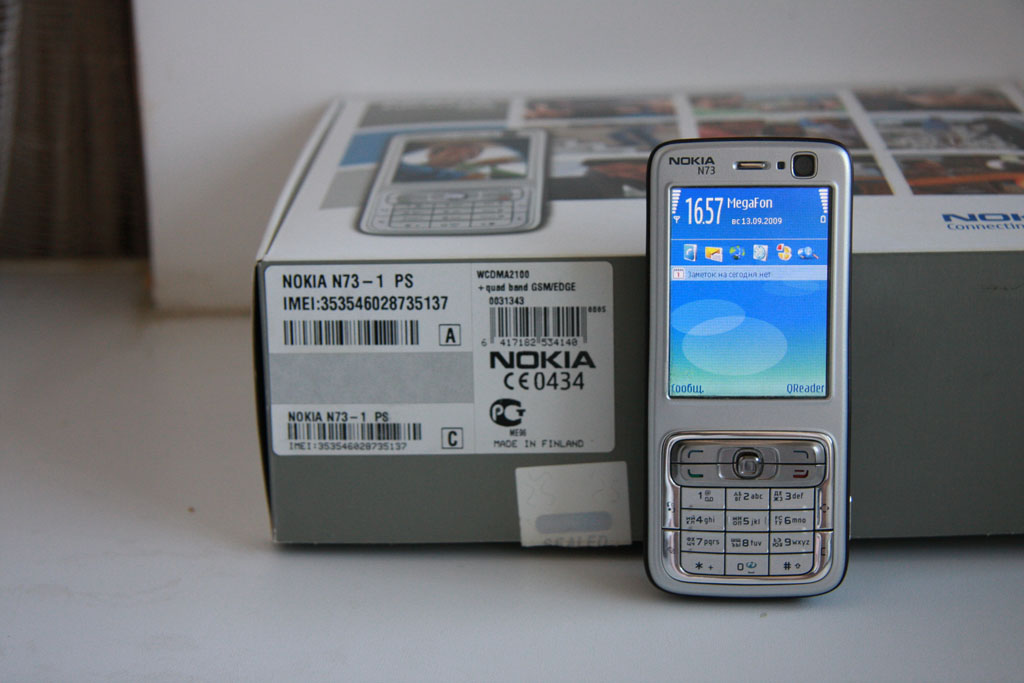 Продается Nokia n73. Производство: Финляндия. IMEI: 353546028735137 Телефону один год. Полный комплект: телефон, ЗУ, гарнитура, дата-кабель, инструкция, коробка, ПО. Состояние на пять с минусом (небольшая потертость краски на ободке в углу дисплея). На дисплее пленка. Пятно в углу дисплея - пузырь на пленке (лечится ее удалением) Типа ауцион. Предлагайте цены