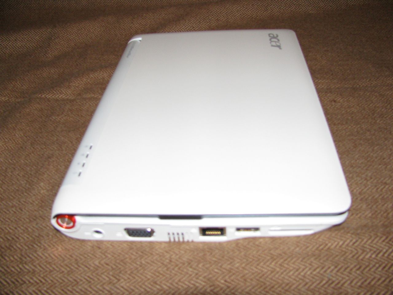 Продается нетбут Acer Aspire one AOA 110w Описание http://market.yandex.ru/model.xml?modelid=2476945&hid=91013 Процессор Atom 1600 МГц Беспроводная связь Wi-Fi 802.11g Память 1024 Мб DDR2 (512 родные + 512 дополнительные) Дисплей 8.9 дюймов, 1024x600, широкоформатный Графический чипсет Intel GMA 950 Жесткий диск 4 Гб твердотельный (SSD) Гарантия заканчивается в декабре. Улучшения добавлена планка 512Мб и усилена система охлаждения Ухудшения иногда не работает встроенная камера и небольшие потертости на крышке. Начальная цен 5500 руб.