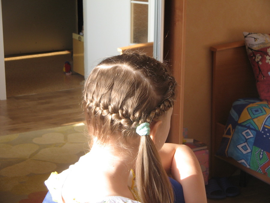 Не! Это я плела типа французскую косичку. На море заплетали ей косы. Но жиденько получилось... Своих волос маловато. Надо с вплетением.