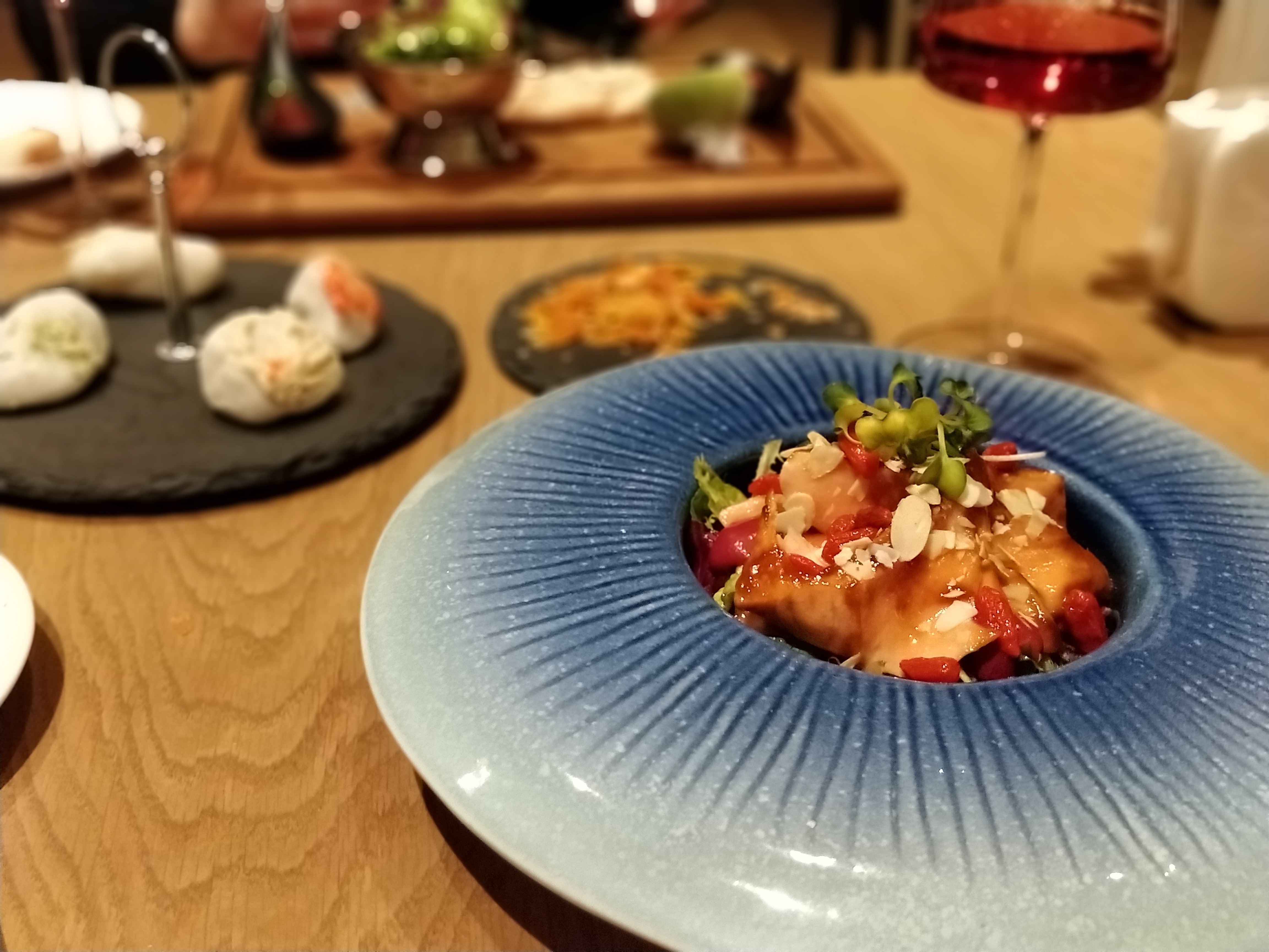 Да, форель, ягоды годжи с каким-то диковинным гарниром... Не помню как называется.