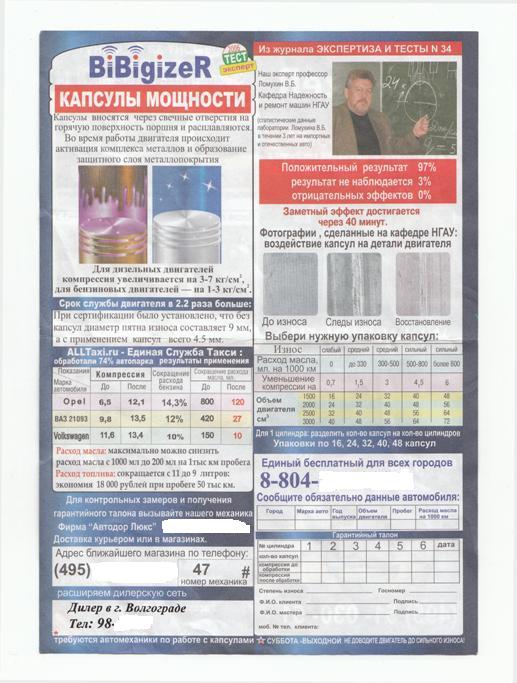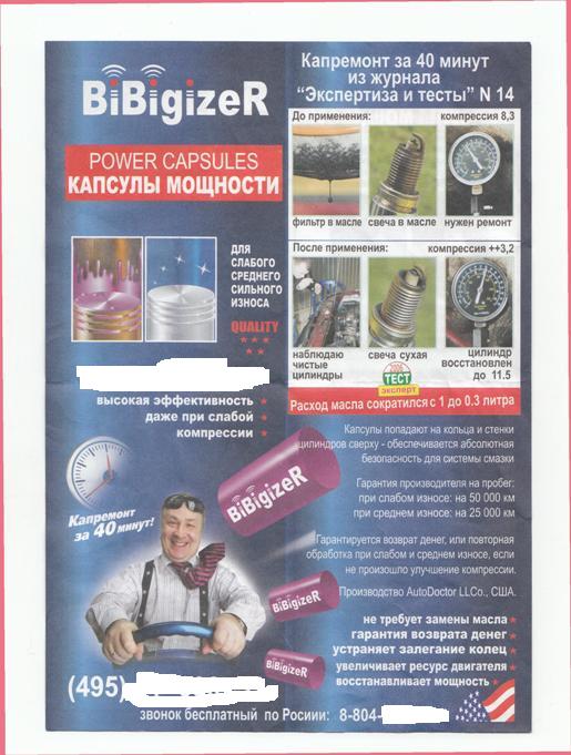 Все это фигня, чудес не бывает, заметьте даже в Гарри Поттере на летающей машине Уизли барахлил двидок и дымил сизым дымом. И даже крутые волшебники ничего не могли сделать какие еще доказательства нужны. Если бы это было бы действительно так, множество ремонтных мастерских брались бы за капиталку за 40 минут, не пачкая рук, и брали бы за это 5000, но почему-то всем хочется разобрать движок и заменить ЦПГ, отремонтировать головку, и топливную систему, и взять за это 10000. Наверное, они все дураки и им еще под дворник не положили бумажку. (А мужики то не знают. Из рекламы пива "То-тяк")