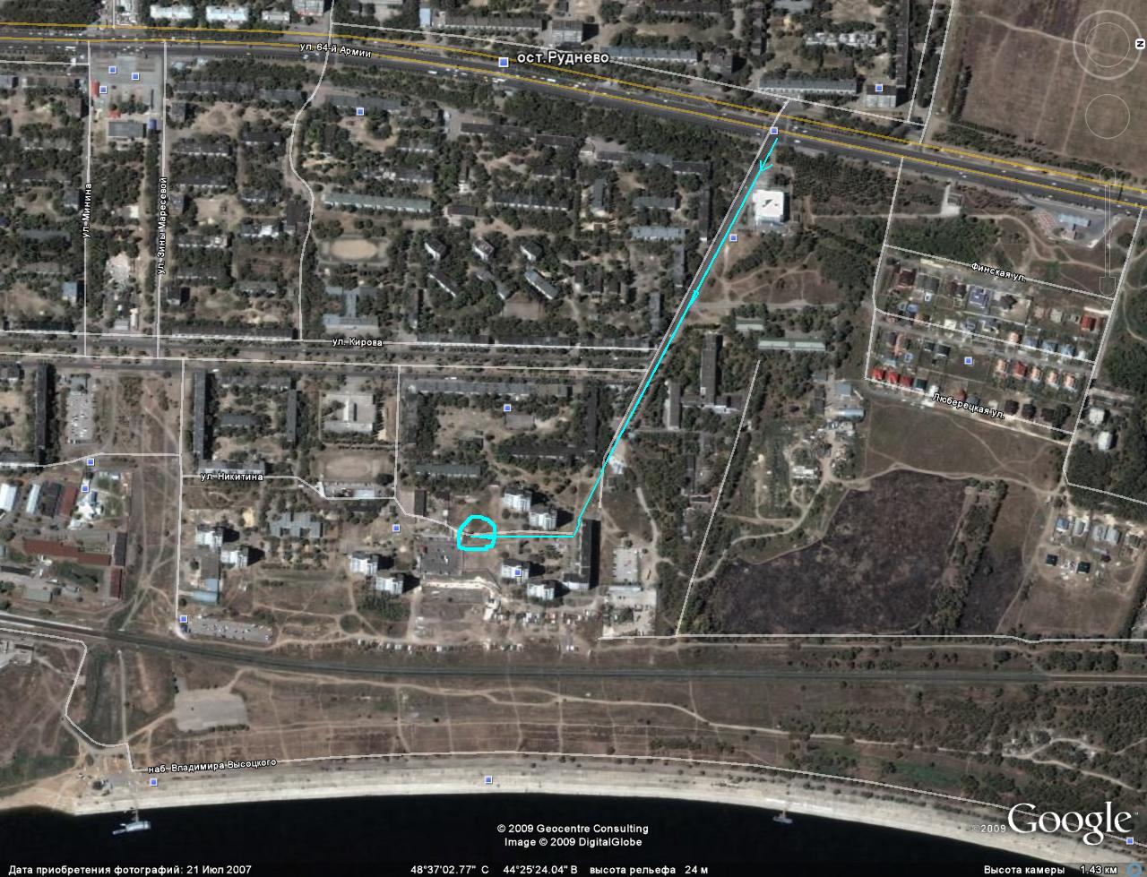 Точно не знаю где он находится, но, по-моему, от Руднева вниз, к Волге, мимо 40 МСЧ, в район улицы Никитина (где высотки, 16-этажки, стоят), где-то там.