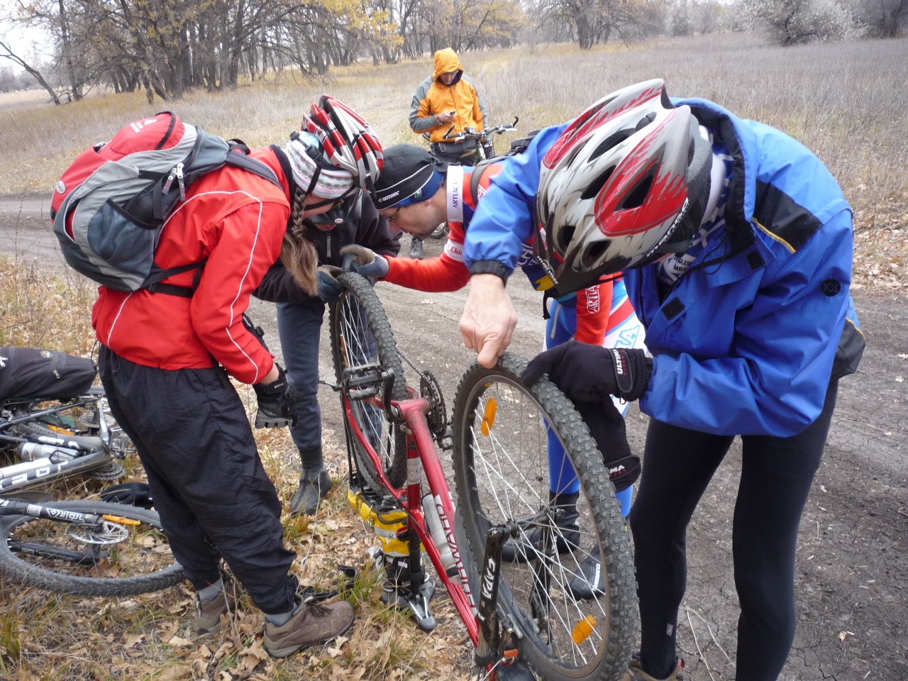 tRIDENT, вот чьи впечатления хотелось увидеть больше всего! Очень интересно мнение человека с таким опытом в нашей компании. А ведь вида не показывал, что нелегко путь дается! Никто не показывал! А оно вон как, оказывается. А у меня было ощущение, что все так и рвутся вперед, с досадой считая потерянные секунды на таких мной долгожданных остановках! Хотя в чем-то у меня было обратное впечатление. Вроде и километраж достаточно штатный, и горок нет, и грязи нет - а силы почему-то быстро кончились и коленки сдали. Наверное, дело в погоде. Холод плюс ветер да плюс маловато остановок.