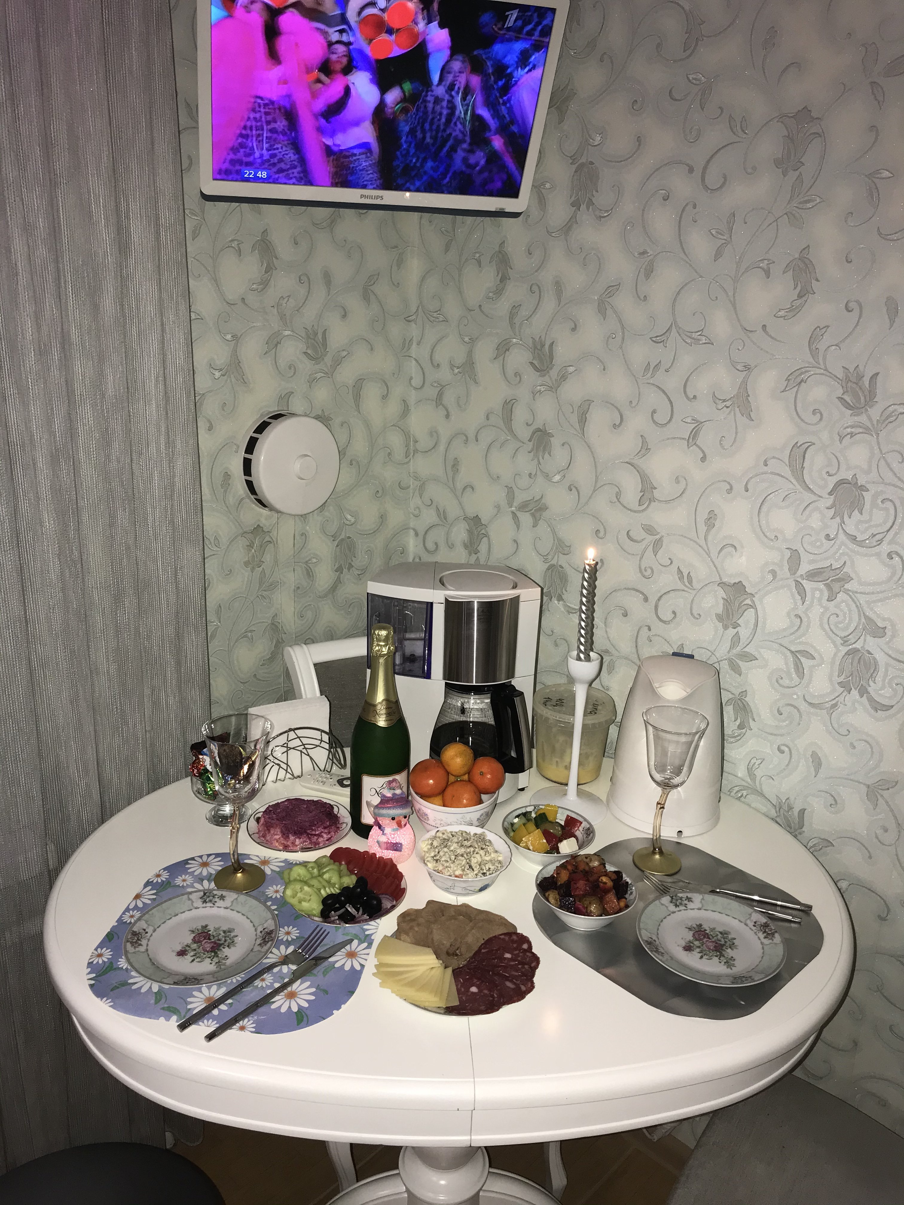 Шампанское с виски. Ну, я в доме не курю, да и эти сорта виски не стоит закусывать, закуривать и пить пузырями. /а так, да, и оливье было и сигариллы и остальное Это - бред.