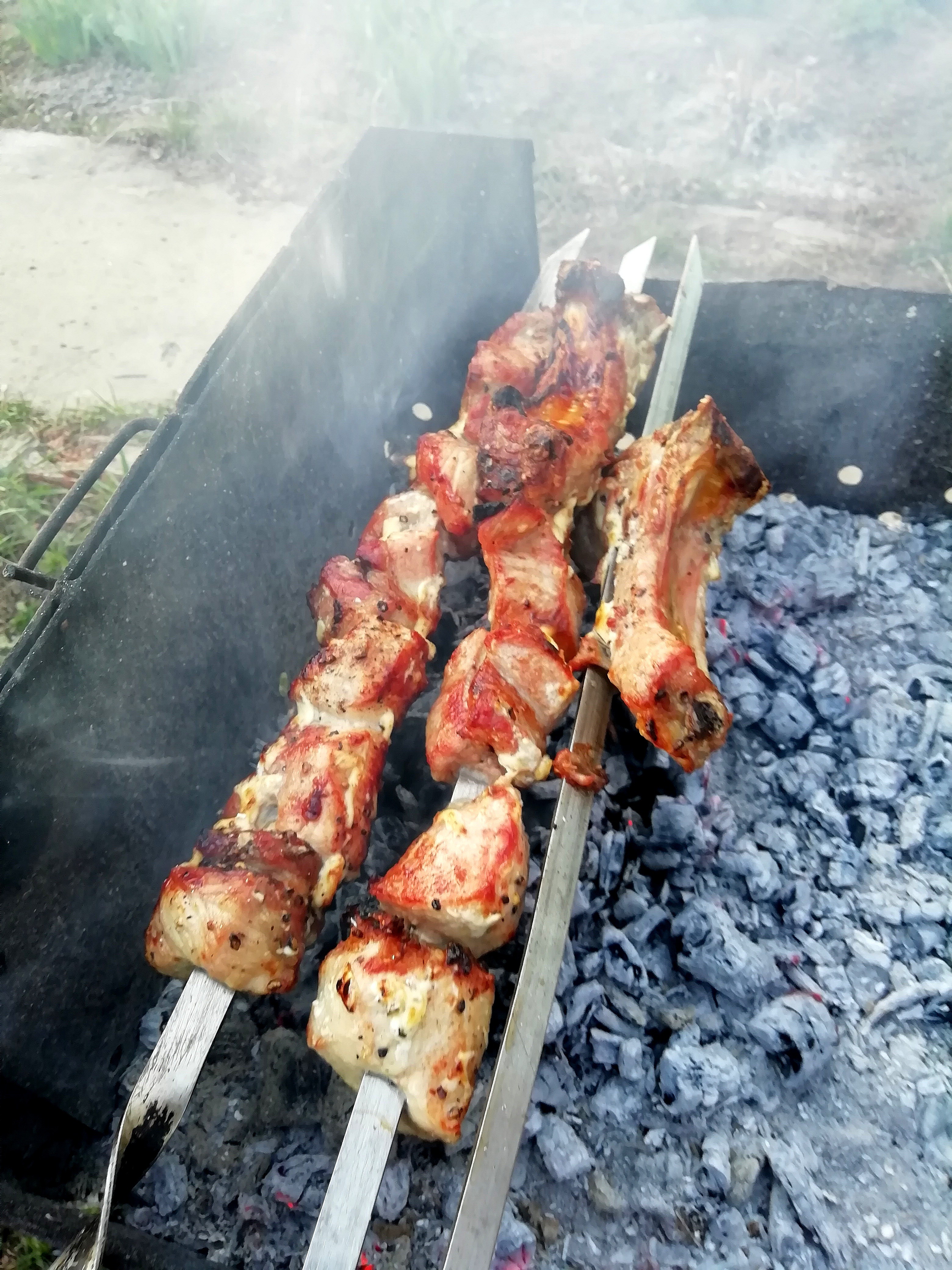 В этом году уже раза три на даче готовил шашлык вот по такому рецепту. Залог успеха - само мясо и простота рецепта. Мясо карбонат на косточке-ближе к шее. Отделяю косточку но что бы оставалось на ней мясо в палец .Остальное нарезать и все это на ночь а можно и утром-замариновать. ПРОСТО - лук ( лучше не крупно)-соль- молотый черный перец . Всё. А во время жарки -когда мясо начинает румяниться- тоненькой струйкой майонеза Слобода провожу пару раз через весь шампур с мясом. И во время переворачивания каждый раз тру шампура с мясом между собой что бы майонез желательно пообтерся между всеми кусками. Рекомендую.Очень вкусно и приятного аппетита .