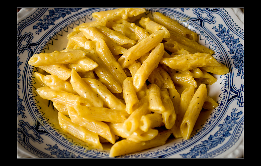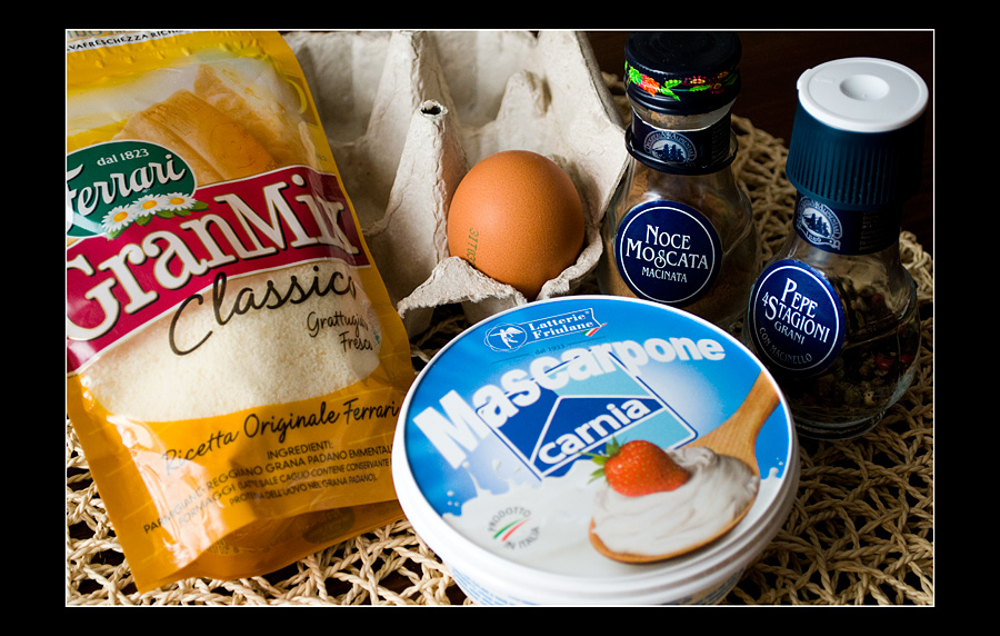 off.: Атака Гризли, я где-то читала, что "средиземноморская диета" способствует долголетию и сохранению цветущего вида. Всё-таки овощи-фрукты свежие фактически круглогодично, оливковое масло с его волшебными эффектами, зелень всех сортов и видов в рационе (те же "репкины корешки", как пошутила одна моя знакомая, и зелень свёклы, шпинат с валерьяной активно в ходу на салаты-пироги-начинки в мясо и пасту)... Мой муж старше меня на 10 лет, но когда он в Россию приехал -- все думали, что мы почти ровесники. Впрочем, медики итальянские сейчас активно бьют тревогу -- нация в последнее время действительно "как на дрожжах", даже дети страдают ожирением, напротив рецептов уже даже принято писать калории из расчёта на персону. И действитель, жрать-то меньше надо... А то паста с соусом -- на первое, мясо с гарниром и порой ещё с какой-нить закуской -- на второе, салатиком закусили, кофе выпили, фруктик заточили, а потом ещё и сладкое на десерт (стандартный обед в доме моей свекрови)... Я из всего этого набора только второе у них и ем, в меня больше просто не лезет, из-за стола просто колобком выкатываюсь... :vcrazy: И они потом ещё и говорят: "Фу, ну супы-бульоны -- это ведь жир, вы, русские, их должны есть их регулярно потому что у вас холодно, и вам нужна сила переносить холода, жирная пища этому помогает, а нам супы не нужны, у нас и так тепло" (а чё ж вы тогда свининку-то наворачиваете? Она не жирная? А с гастроэнтерологами давно разговаривали насчёт того, сколько жидкой пищи необходимо желудку-кишечнику для нормального функционирования?) добавлено через 5 минут Тьфу, не корешки, а вершки репкины, конечно. Чёт редактирование постов не работает... добавлено через 2 часа 59 минут Ингридиенты на 4 персоны: * Паста (в рецепт е рекомендовали Tagliolini, но у меня дома были только Pennette Rigatte #72 от Барилла) — 400 г * Маскарпоне — 150 г * 3 яйца * 6-8 ложек тёртого Пармезана или Грана Падано * Мускатный орех * Соль * Перец свежемолотый Соус готовится незадолго до готовности пасты (паста, ессесно, варится "al dente"). Итак, желтки комнатной температуры растереть вместе с тёртым пармезаном до однородной массы, посолить и поперчить. В глубокой толстостенной сковороде, а ещё лучше — на водяной бане — медленно разогреть яично-пармезанную массу вместе с Маскарпоне и мускатным орехом (количество по вкусу) до единой текучей массы. Добавить к соусу пасту, хорошенько перемешать и разложить по тарелкам. При наличии возможностей и желаний — сервировать, посыпав тёртой шкуркой лимона и икрой пинагора.