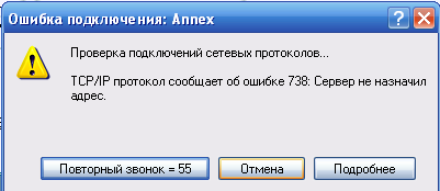 Filler, а попробуйте поставить 10.0.0.1 , а не vpn.annex.ru , если в настройках соединения указан не IP-адрес.