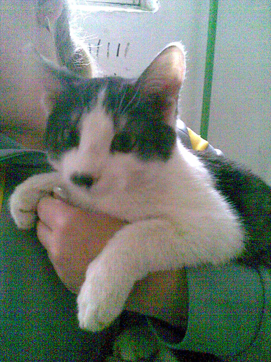 Уже неделю у меня в подъезде живет вот это чудо. Кормим всем подъездом, взять себе не могу, собственный котэ не кастрирован. Это кот, на вид ему месяца три, мурчит не переставая, играет, ручной очень, ходит в туалет в лоточек, который ему заботливые соседи поставили рядом со спальным местом. Может, нужен кому то ласковый кото-друг, жалко малыша. Пытались отдать в "Покровитель", были посланы оттуда в известном направлении Прошу прощения за качество фотографий-сделаны телефоном
