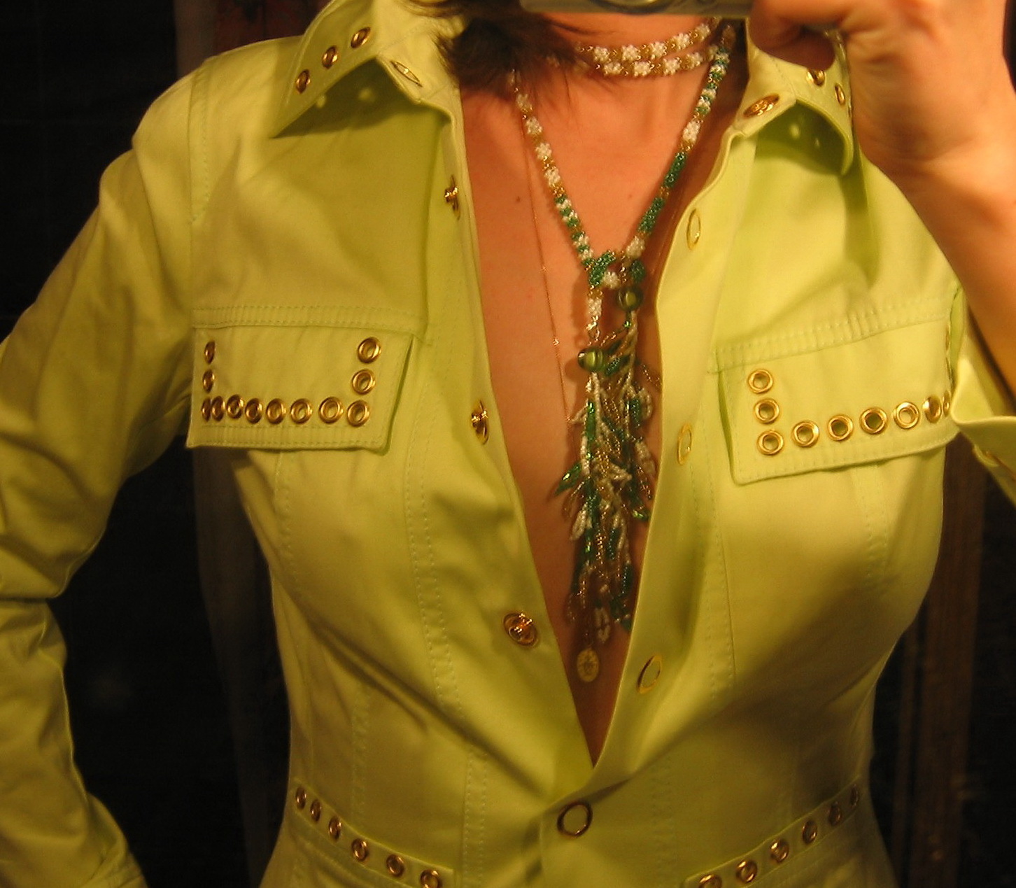 Маришка, Вы молодец. Я тоже люблю бежутерию. У меня ее немало. Лучше хорошая бижутерия, чем дешевая "краснуха" на шее. Год назад приобрела здесь на форуме в разделе рукоделия. Ношу с удовольствием. Хотела в том же разделе приаттачить, все забывала. Вот как раз здесь выложу.